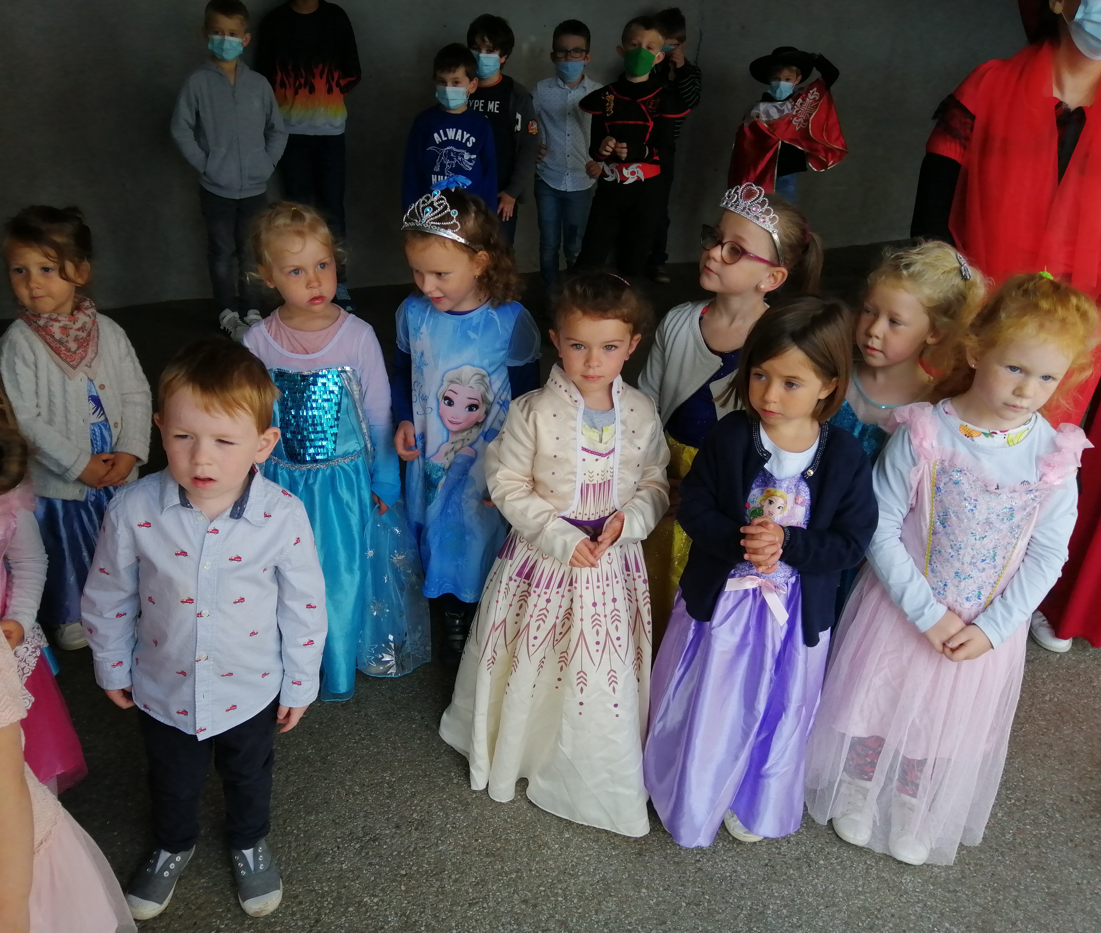 Ce jeudi 24 juin, de bien drôles de personnages sont arrivés dans l’enceinte de l’école: fées, princesses, spiderman, chevaliers, mousquetaires, un oiseau multicolore et même…Marie-Antoinette!