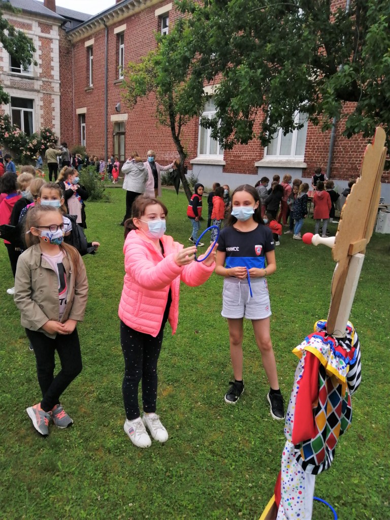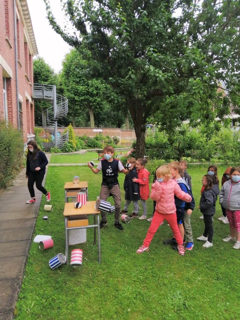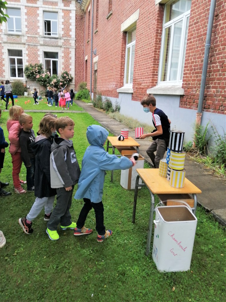 Au programme: Jeu des clowns, jeu du parachute, jeu du garçon café, chamboule-tout et jeu picard fait maison par Axelle.
