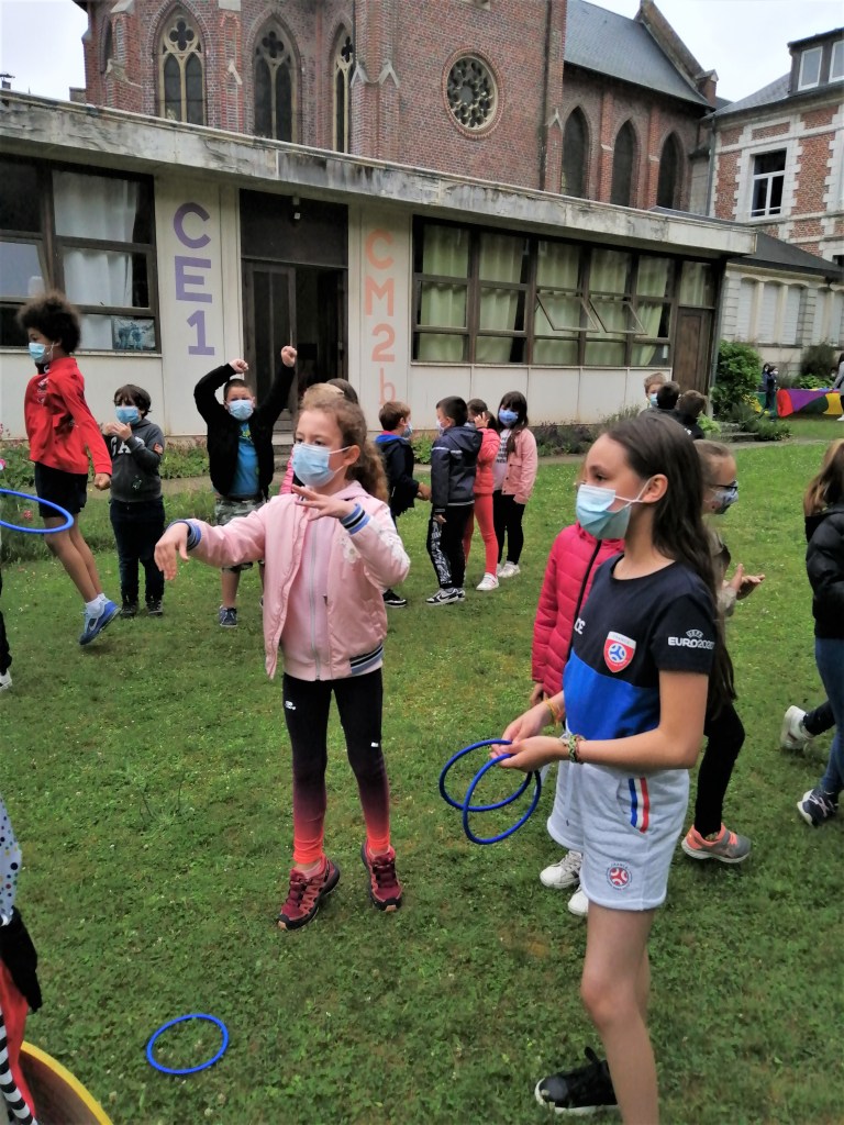Le plateau « sport » pour la classe de CE2A de Mme Dournel, pour la classe de CE2B de Mme Marquant, pour la classe de CM1A de Mme Caron et pour la classe de CM1B de Mme Gernez était organisé et mené par Corentin.