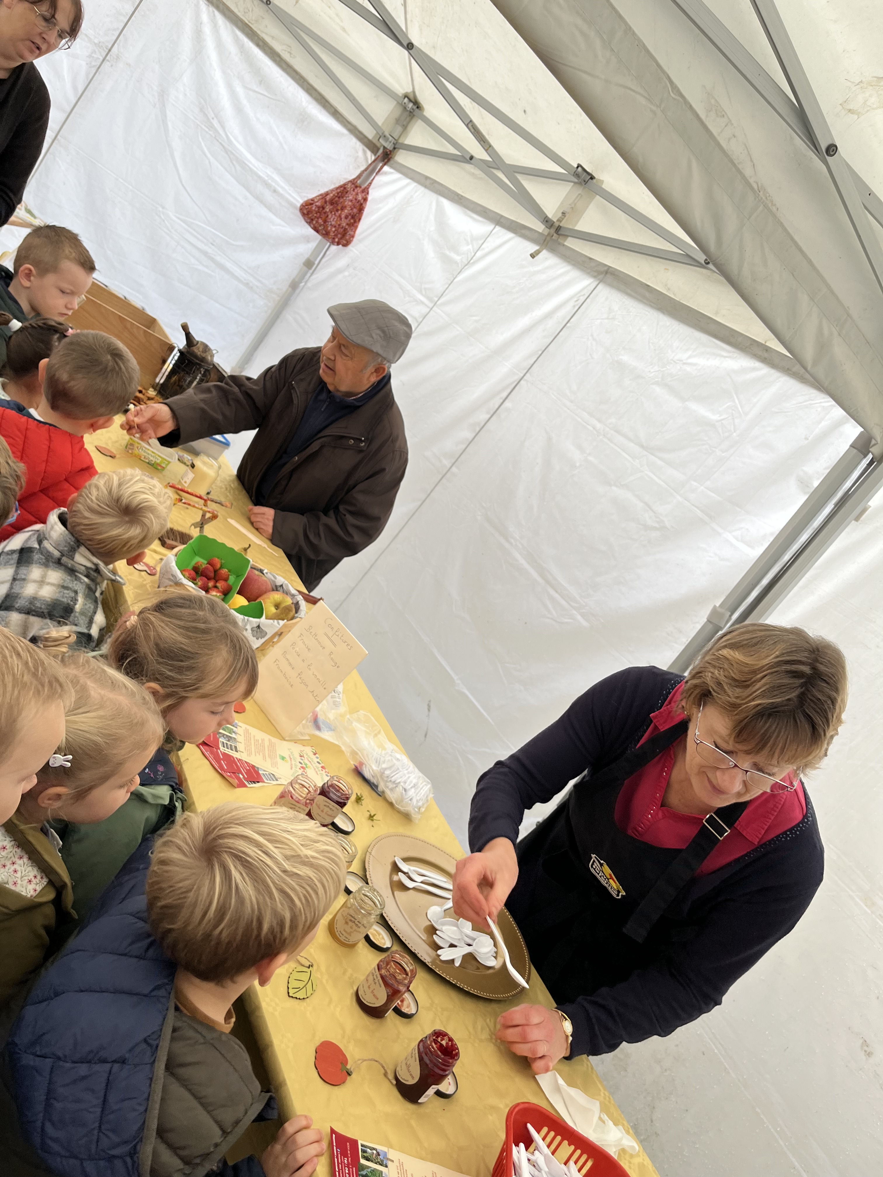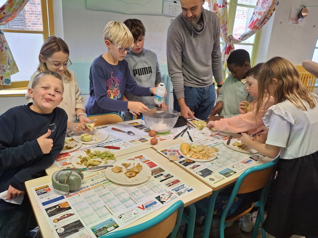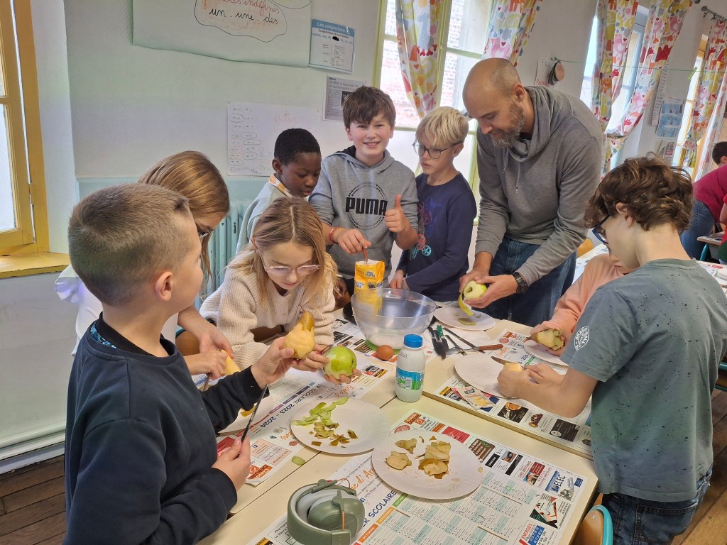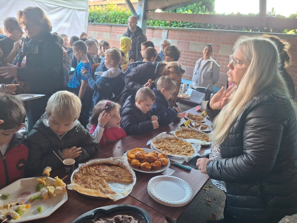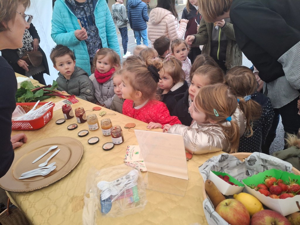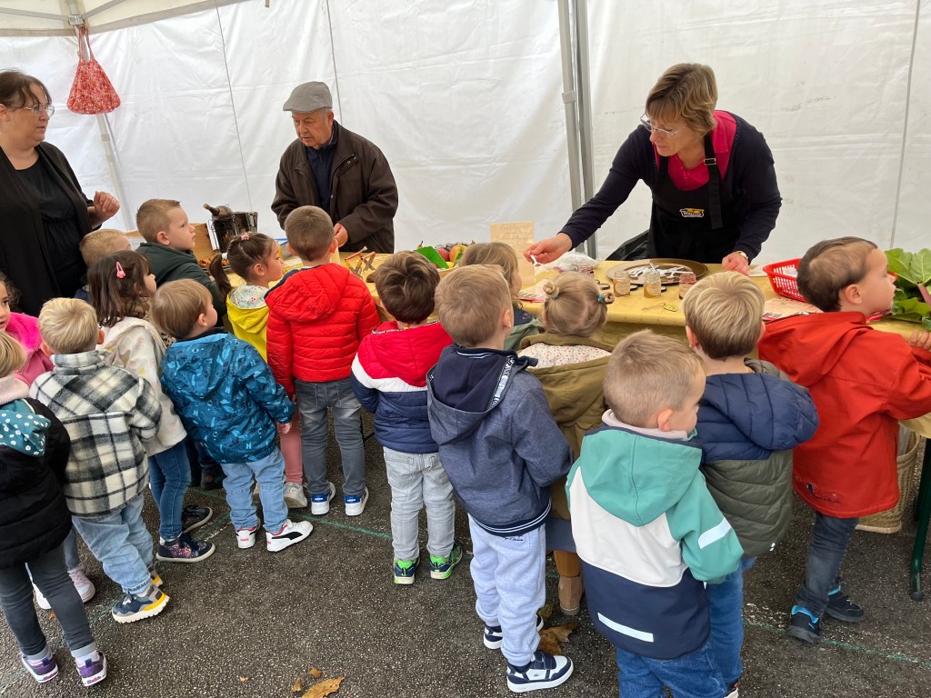 A l’association des parents d’élèves de l’école pour leur participation: nous avons, grâce à eux dégusté de très bonnes confitures provenant d’une productrice d’Autheux « L’Atelier des fruits » ainsi que du miel de Bernaville. Les enfants ont également bu du jus de pommes maison, de la tarte à la rhubarbe confectionné par Emma , maraîcher à Beauquesne « Ô marronnier »,